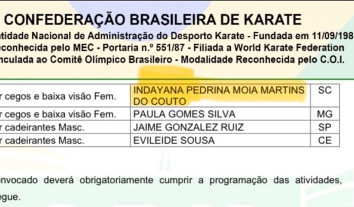 Olá! Meu nome é Indayana Pedrina Moia Martins do Couto, atleta de parakarate em Joinville (SC). Estou me preparando para representar o Brasil no Campeonato Pan-Americano de Karate 2026 em Macaé (RJ) dos dias 20 a 31 de maio e conto com seu apoio para tornar esse sonho possível. O Parakarate exige dedicação, disciplina e investimento em equipamentos, treinamentos e deslocamento. Para custear as taxas de deslocamento, passagens, materiais esportivos, e alimentação criei esta campanha de arrecadação. Cada contribuição, por menor que seja, fará grande diferença na minha jornada rumo à competição e ao pódio. Para colaborar, basta fazer sua doação por meio da chave PIX: 6068872@vakinha.com.br. Sua ajuda me aproxima da preparação ideal e do objetivo de levar o nome do Brasil ao pódio Pan-Americano. Muito obrigado pela sua solidariedade e incentivo!