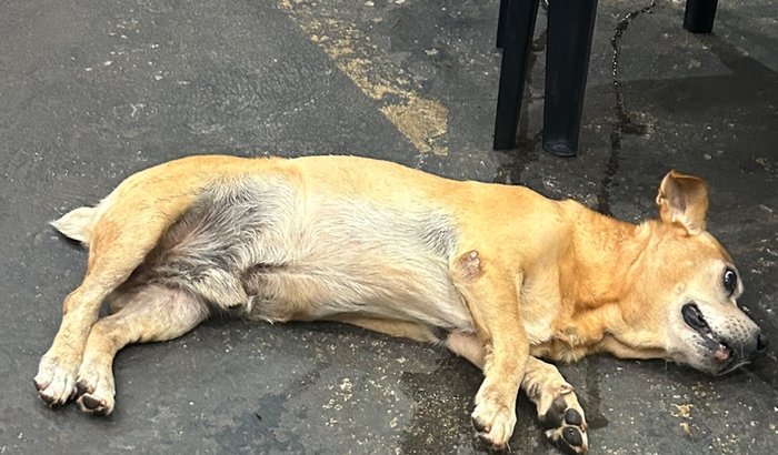 Um carro atropelou o cachorro, não prestou socorro, o cachorro vai precisar fazer uma radiografia e tomar analgésicos