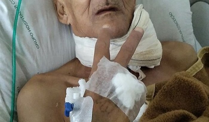 Paulo é um senhor de 61 anos, que foi diagnosticado com câncer de ezofago à menos de 3 meses, em estágio avançado, como esse câncer está em local delicado, acabou abstruindo a veia respiratória dele, ocasionando a fazer uma traquiostomia (colocar aquele caninho na garganta) e uma gastrotomia, para receber o alimento necessário, uma dieta especial, também está tendo que usar oxigênio.