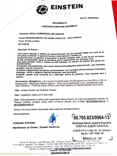 O médico me solicitou um exame de "Sequênciamento de Exoma Completo" no valor de R$5.406,00 para conseguir diagnosticar o meu problema de saúde. E Infelizmente não tenho condições financeiras para arcar com os custos do exame, então preciso de ajuda para conseguir me livrar dessa doença e acabar com esse sofrimento.