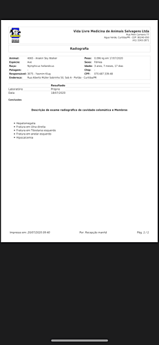 Tudo ficou bem até sexta a noite (18/7), quando fomos dar o remedinho pra ela e ouvimos algo quebrar.... quando vimos a perninha dela estava molinha. Ligamos pra emergência do Vida Livre e fomos correndo com ela. Ela tomou mais uma injeção de anti-inflamatório e esperaram até sábado para ver o que acontecia, até então não parecia ter nada quebrado, somente uma luxação. Mas na radiografia de sábado mostrou uma fratura no tornozelo esquerdo dela. E mais uma talinha na patinha dela. Ao colocarem a tala na perninha dela, causou estresse e acabou fraturando o úmero esquerdo dela também.