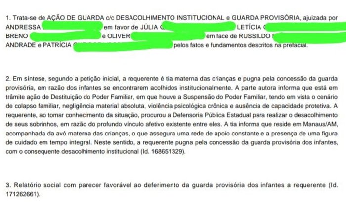 Lutei muito na justiça e, hoje, dia 3 de março, finalmente recebi a notícia de que ganhei a guarda deles. No entanto, não consegui nenhum auxílio do município ou do estado para custear o transporte das crianças do Maranhão para Manaus.