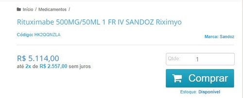 O tratamento com o Rituximab é feito com 8 aplicações no valor que varia de 5 a 8 mil reais cada uma, dependendo de onde é comprado.