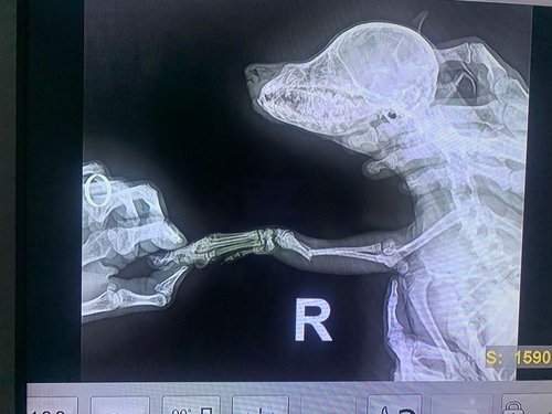 Essa gracinha se chama Mucilon, tem 3 meses, a tutora se chama Jane Nogueira, mais conhecida como Baiana, e no dia 16/03/2024 quebrou as duas patinhas da frente enquanto brincava. Foi realizado consulta, e indicado medicamento para dor e anti-inflamatório, também foi realizado um raio x, no qual nos mostrou que a Mucilon havia quebrado as patinhas. Foi avaliado em 4000 reais para realização da cirurgia de ambas as patas. Quem puder ajudar a gente agradece desde já.