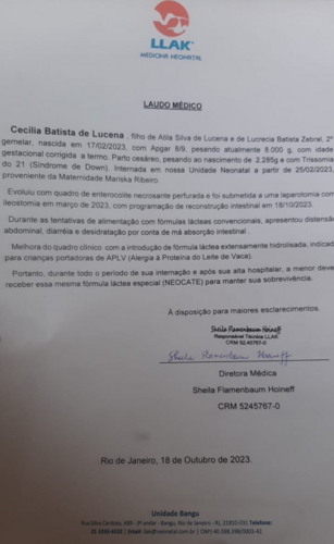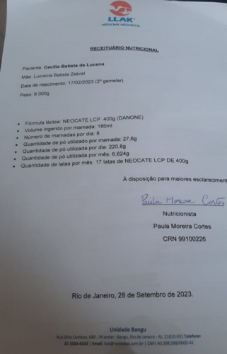 Cecília vive desde o nascimento (há 9 meses) no hospital, está pra ter alta, mas por causa do APLV e os problemas intestinais só pode se alimentar de um leite especial chamado Neocate, que custa 280 reais cada lata, ela necessita de 17 latas por mês, fora os outros custos com o tratamento e cuidados básicos da Cecília e Luísa( a 1° gemelar).