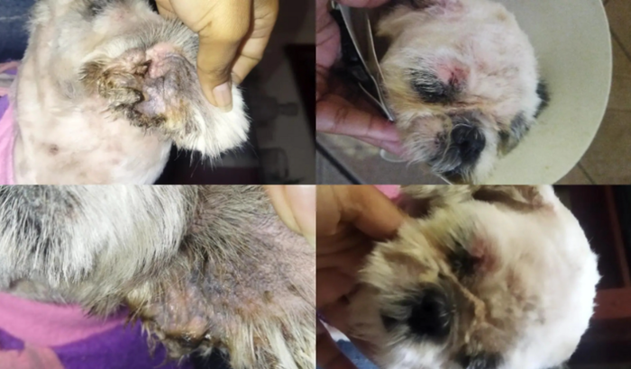 A Charlote é uma cadela da raça Shitzu, com aproximadamente 5 anos de idade, extremamente dócil e tranquila. Chegou em minha vida no dia 25/06/2022 (sou sua terceira dona). Foi recebida com muito amor. Porém, após sua chegada detectamos alguns sinais de que sua saúde não está boa. Levamos ao médico veterinário e descobrimos que a Charlote está grávida, com uma doença em sua pele proveniente de pulga que estava proliferando a algum tempo, e suas orelhas e ouvidos estão tomadas por um tipo de fungo e algumas bactérias.