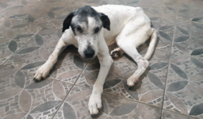 Levamos ele ao veterinário, lá descobrimos que ele tem por volta de 19 anos… É muito velhinho e provavelmente foi abandonado por conta da idade!
