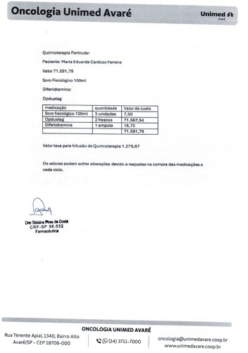 O tratamento custa cerca de R$ 75.000 por mês, e criamos essa vaquinha com o objetivo de arrecadar R$ 150.000, para garantir pelo menos os primeiros 2 meses de tratamento, tempo necessário para ela iniciar a imunoterapia enquanto aguarda a decisão judicial.