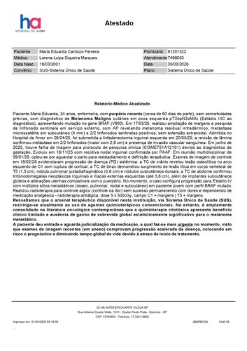 A Duda já entrou com ação judicial para conseguir o medicamento pelo poder público, mas infelizmente a doença está avançando enquanto ela espera.