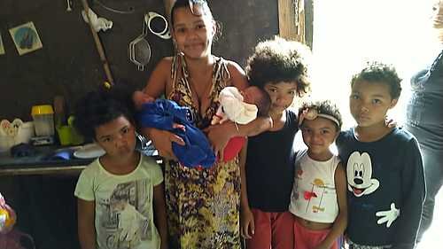 A família do Ricardo (34 anos) e da Carol (26 anos) precisa de um lar com urgência! Eles têm 7 filhos, sendo dois recém-nascidos e "moram" em um barraco de dois cômodos na beira de um córrego, em Carapicuíba. Eles convivem com insetos, ratos, escorpiões e sempre que chove, o córrego transborda e o nível da água chega a bater no joelho.