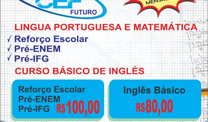 O projeto é para ajudar a montar um curso pré-ENEM próximo ao Papillon Park - Aparecida de Goiânia, com um valor bem a baixo do oferecido pela maioria dos cursos e com profissionais qualificados, formandos na área em que irão atuar no curso. O local do projeto por ser um pouco mais afastado do centro ajudará os estudantes que pretendem se preparar para o ENEM, mas precisam pegar mais de um coletivo para chegar ao curso ou não podem por questão financeira fazer esse deslocamento. O custo de 3.500,00 reais cobre todo ou quase todo o investimento no projeto (aluguel do local, iluminação, água, cadeiras e messas, etc.).