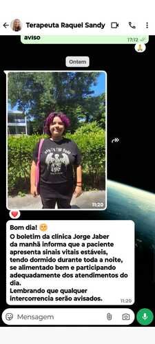 Ela segue internada, no entanto temos e atualizações constantes da clínica sobre seu estado de saúde. As visitas são controladas e temos pouco contato para que o tratamento seja mais eficaz, já que a rotina inclui grupos terapêuticos e atividades diárias .
