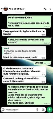 Infelizmente, no dia 19/02 , minha filha precisou retornar para a clínica , desta vez sem previsão de alta. Agora, ela está internada pelo plano da mãe , que foi devidamente informada sobre a cobrança após 30 dias. O Bradesco entrou em contato no mesmo dia para avisar, algo que não aconteceu comigo anteriormente com a Sulamérica.