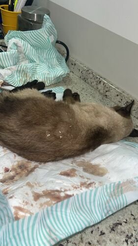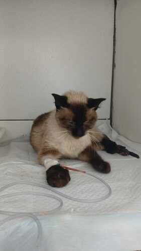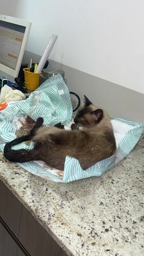 Olá, meu marido Nicodemes no dia 22 de janeiro de 2025, encontrou uma gatinha na estrada do mar. Ela estava cambaleando e, ao parar o carro, percebeu que precisava de ajuda urgente. Resgatou e a levou ao veterinário, onde descobrimos que ela estava com muitas feridas e bicheiras em várias partes do corpo, como a cauda, barriga e pataInfelizmente, a situação dela é grave. O veterinário avaliou os danos e recomendou as seguintes intervenções