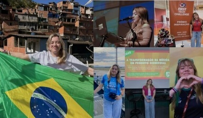 Logo, já encontrei um dos grandes significados para tudo que sempre amei, a robótica. Entrei em duas equipes, liderei a área social, criei e participei de projetos sociais incríveis, e tive a imensa alegria de ser reconhecida com o prêmio Dean's List Semifinalist — um reconhecimento internacional para estudantes que são verdadeiros "catalisadores de mudança" em suas comunidades, inspirando e liderando com empatia. E tive a felicidade de ser selecionada para a Seleção Brasileira de Robótica, representando o Brasil em uma competição que une mais de 190 países.