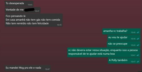 (polly é uma empresa que ela prestou 15 dias de serviço e até agora não foi paga, nesses 15 dias ela trabalhou em 2 empregos, de manhã na Polly, e a tarde na DHL)