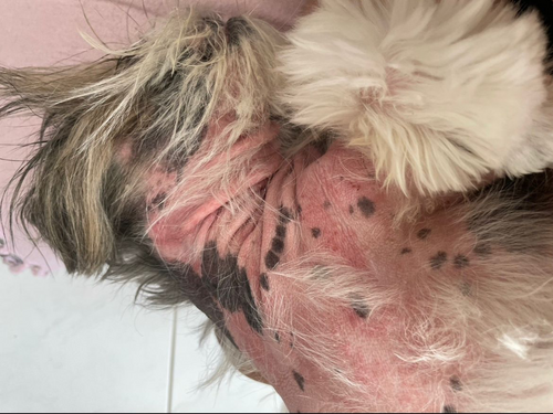 Atualmente estou em uma crise muito severa, que vem causando perca de pelos em todo o corpinho, muita coceira que chego até a sangrar. Esse estágio, vem trazendo ainda mais custos.