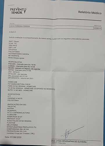 Tudo isso me trouxe algumas sequelas como paralisia cerebral, Epilepsia, faço uso de oxigênio, sonda gtt, e cuidados dos anjinhos do home care 24h por dia, que só conseguimos, graças a Deus primeiramente que tem cuidado de nós e também do serviço da mamãe que tem convênio médico o que nos ajudou bastante nesse período.