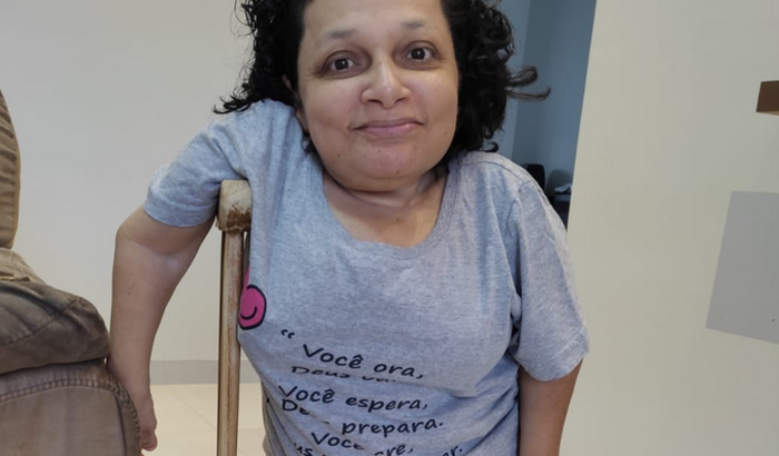 Eu sou Maria Lúcia, tenho 46 anos, 91 cm de altura, sou deficiente física e preciso fazer um tratamento medico poder continuar andando.