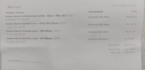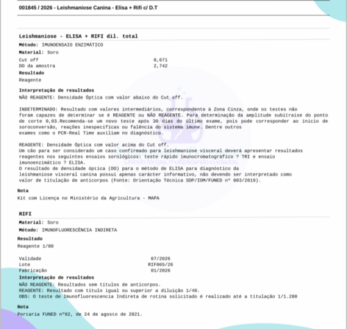 Após várias alterações nos exames feitos na primeira consulta e junto com os sinais clássicos da doença que ela aparentava, a Mel estava com suspeita de ter Leishmaniose e/ou a doença do carrapato. Fizemos o exame para detectar Leishmaniose e infelizmente deu positivo