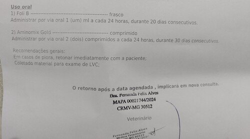 Desde a primeira consulta ela está em Lar Temporário na minha casa e está suplementando com vários medicamentos pois ela está extremamente desnutrida