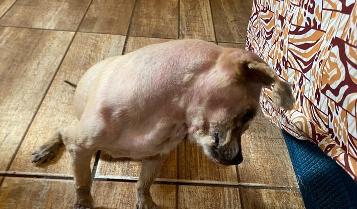 Fui levada para tomar banho em um pet shop e voltei para casa completamente diferente de como saí. Cheguei sem conseguir andar, com vários hematomas pelo corpo, além do pescoço inchado que agora só fica caido para o lado esquerdo, e sem forças para me alimentar.