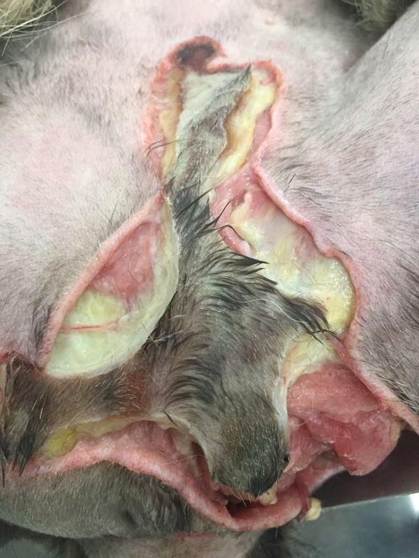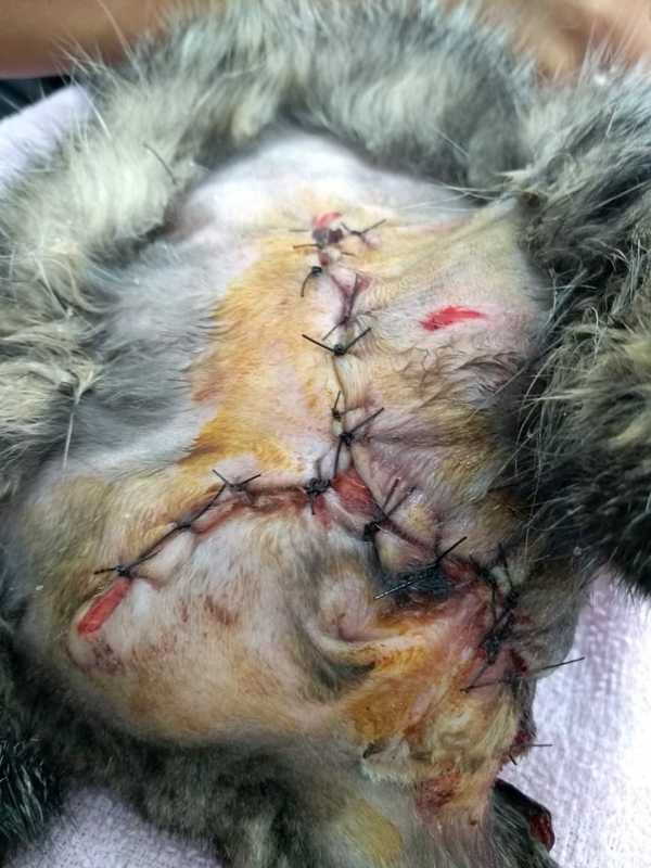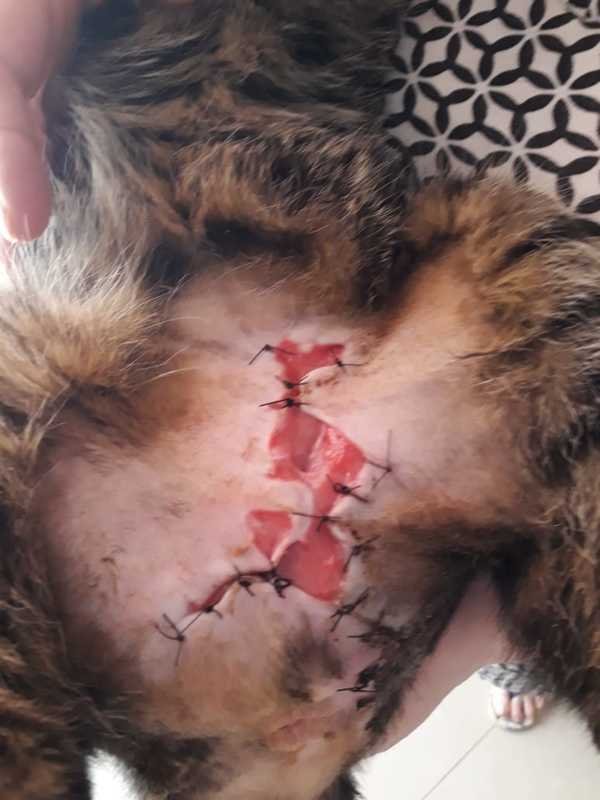 Após ser envenenada o veneno causou alguns danos em sua derme e epiderme, causando abcessos que estouraram e vazaram com pus e secreções, ela passou por diversas operações para limpar as feridas, retardar os sintomas do veneno e retira-lo do corpo e o veterinário que a atendeu concordou em me dar a chance de fazer uma vakinha para acumular dinheiro para tentar cobrir as despesas do tratamento.