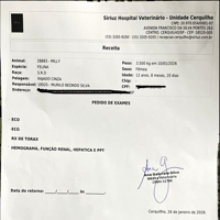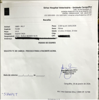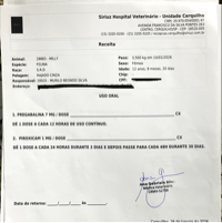 Nos últimos meses, a Milly começou a apresentar uma lesão na região da boca. Após exames e citologia, recebemos o diagnóstico de carcinoma oral em fase inicial, uma condição grave que exige acompanhamento veterinário, exames complementares e tratamento específico. Alguns desses exames que sera realizado é a ECO, Tomografia de pescoço e cabeça, eletrocardiograma, Raio-X oral, hemograma completo. Tudo isso para ver se será possível a remoção do carcinoma por meio cirúrgico, antes que o câncer prejudique os ossos da face.