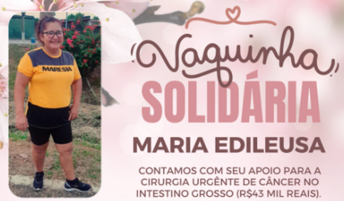 Meu nome é Jessyane Soares, minha mãe foi diagnosticada com câncer no intestino grosso a 8 meses, está em estado grave, infelizmente não podemos fazer pelo SUS, pois ela já não tem tanto tempo assim... A cirurgia custa R$43.790 mil reais... Para mais duvidas entre em contato comigo via whatsApp ( 68) 999582647 posso mostrar o Laudo médico!