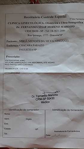 E por essa razão estou aqui, pedindo a ajuda de vocês em nome da minha irmã, pois ela tem que tomar uma injeção por dia, até 45 dias depois do nascimento do bebê. E infelizmente não temos condições de arcar com todas as despesas, pois cada injeção custa 45,00 o que totaliza 1.350,00 por mês.