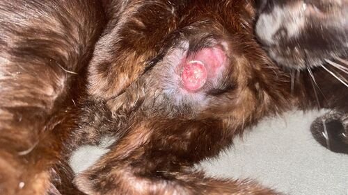 Ela é uma gatinha preta muito carinhosa que apareceu no telhado do meu serviço e foi acolhida pela Gabi que não tem condições de pagar pelos exames e tratamento caso seja constatado o câncer.