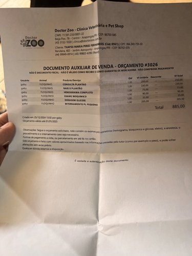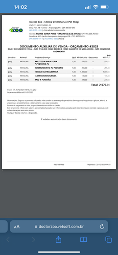Na primeira foto o nome está Floquinho pq eu tive que dar um nome pra dar entrada no veterinário, o segundo orçamento está como Natalina pq viram que era uma fêmea e eu troquei o nome, mas os 2 orçamentos são da mesma cachorrinha, só ver os horários.