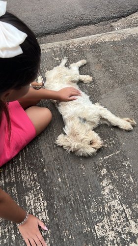 Essa cachorrinha estava atravessando a rua e um carro acelerou pra ateopelar. Em pleno dia de Natal.
