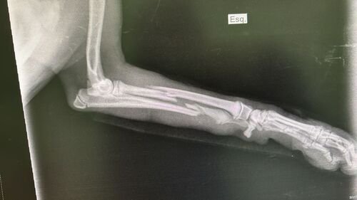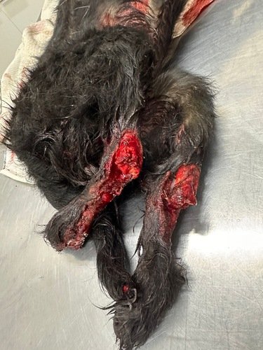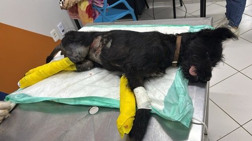 Pantera tem apenas 06 meses de vida e foi vítima de atropelamento e restou poli traumatizada (fraturas expostas nas duas patinhas traseiras, fratura na pelve e na patinha da frente).Seus tutores não tem condições de arcar com todos os custos do tratamento e cirurgias necessárias.