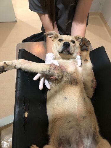 A Pantufa, com menos de um ano de vida, foi brutalmente atropelada em uma BR e chegou até nós com fraturas graves — três patas quebradas, sendo duas dianteiras e uma traseira. Uma das patinhas dianteiras estava com osso exposto, e por esse motivo precisou ser amputada imediatamente. Houve até quem sugerisse a eutanásia, mas nós não queríamos desistir dela. A Pantufa queria viver, e nós escolhemos lutar ao lado dela.