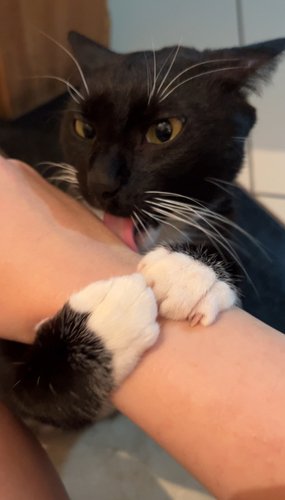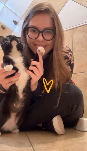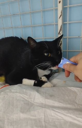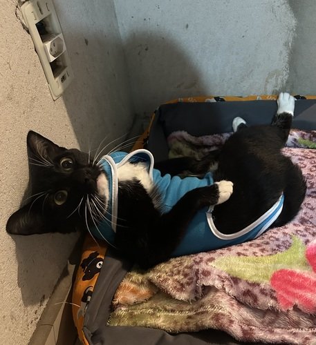 Ela foi encontrada no acesso a uma pista em Nova Odessa-SP (maio de 2024). Em consulta veterinária, testou positivo para a FeLV (Leucemia Viral Felina). O que eu jamais imaginava é que ela também estava prenha de 6 bebês em óbito, cada um num tempo gestacional diferente. Até que eu descobrisse a gravidez, se passaram 3 semanas após um primeiro ultrassom que não identificou nenhuma alteração nesse sentido. Por estar muito conectada com ela, comecei a ficar angustiada e procurei um segundo US: bingo! Corremos para fazer uma cirurgia/cesária de emergência. Salvei ela pela segunda vez!🥹