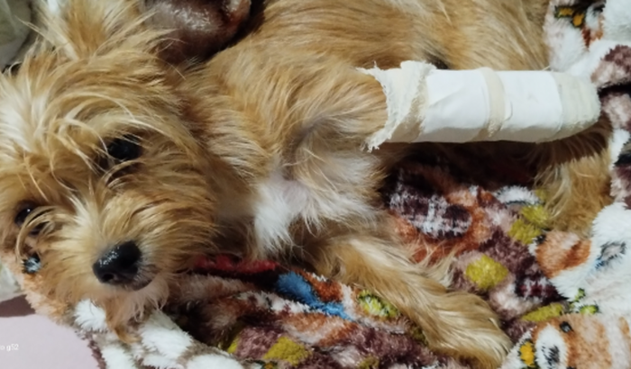 Pipoca em suas aventuras de caça lagartixa pelo quintal , acabou caindo da escada e Fraturou o osso da Patinha em dois lugares. E neste momento não temos condições de custear a cirurgia que ela prescisa Fazer .