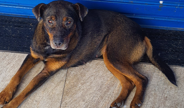 Essa cachorra foi abandonada na porta da minha casa e esta muito doente e debilitada, precisando de cuidados medicos.