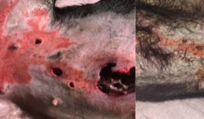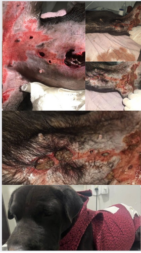 A pretinha era uma cachorra muito saudável, até quem um dia ,quando cheguei em casa e ela correu para rua e foi atropelada no dia 30/03/2024, ontem a noite 11/04/2024 ela apareceu na casa da antiga dona completamente feriada e com muitos ferimentos , os animais indesejáveis estavam sugando seu ferimento como podem ver, despertado, levei ela em uma clinica PET 24 horas e ela ficou internada.