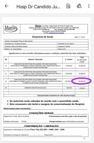 A cirurgia tem o valor de R$22.000 conforme laudos medicos, e eu nao tenho condicoes financeiras de pagar esse valor .