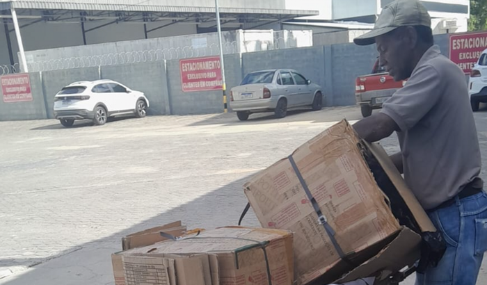 Esse ano ele começou a coletar materiais recicláveis, o que ajuda mas é algo que não traz segurança e não tem valor fixo. Ele já tem aposentadoria dele, mas um salário mínimo para suprir gastos de uma pessoa idosa e principalmente comprar remédios para um problema de vista que ele tem, acaba não dando. Ele sai às 8h e chega às 22h, já teve dias de eu chorar preocupada. Às vezes me lembro de quando ele era vendedor ambulante (salgados), nos dias de chuva e frio, eram os mais preocupantes.