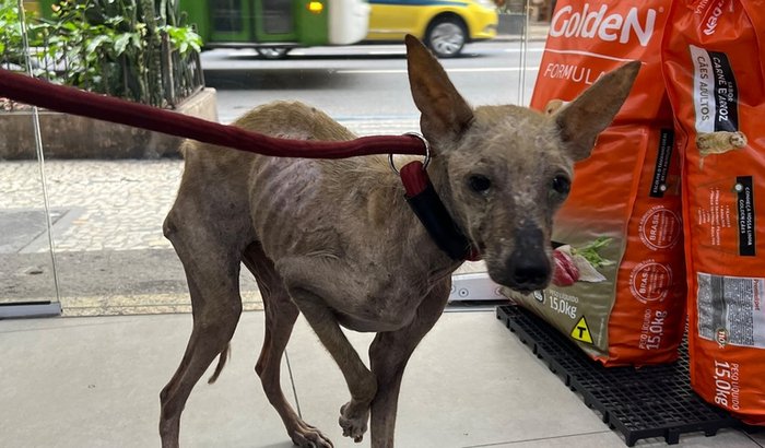 Ontem, voltando do trabalho, encontrei essa cachorrinha em estado crítico na região da Gamboa. Ela estava muito debilitada, fraca e precisando de socorro urgente. Naquele momento, não dava pra fechar os olhos.