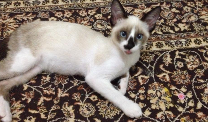 Milk foi adotado ainda filhote, logo após ser salvo de pessoas queriam joga-lo do alto de uma construção.