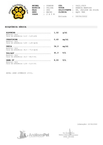 Precisamos fazer o exame de FIV/FELV pra diagnosticar ele, mas o exame custa R$120,00.