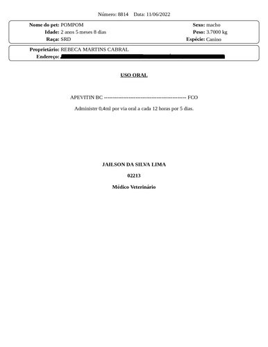 Já parcelamos R$355 no cartão só na primeira consulta, com exames de sangue, internação, soro e remédios. Não tenho como deixar ele internado porque a diária custa R$70,00 e não temos mais como pagar, então peço a ajuda de vocês. Me formo em enfermagem em julho, mas ainda sou desempregada, minha mãe nos sustenta só com um salário mínimo, precisamos de ajuda para salvar Pompom.