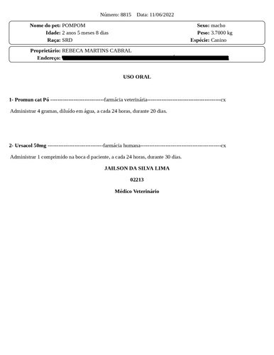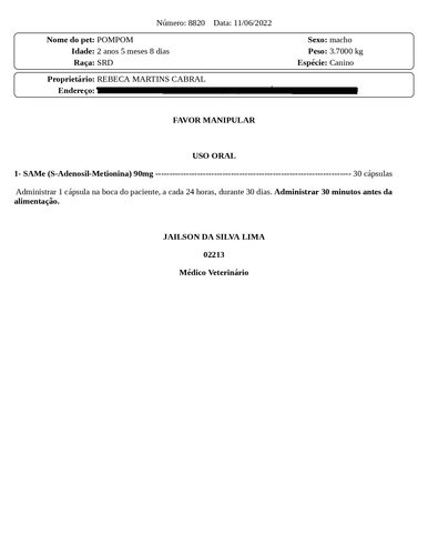 Também precisamos comprar quatro medicações (Promun Cat, Ursacol, Apevitin BC e S-Adenosil-Metionina) pra ele que somadas dão valor de R$190,00.
