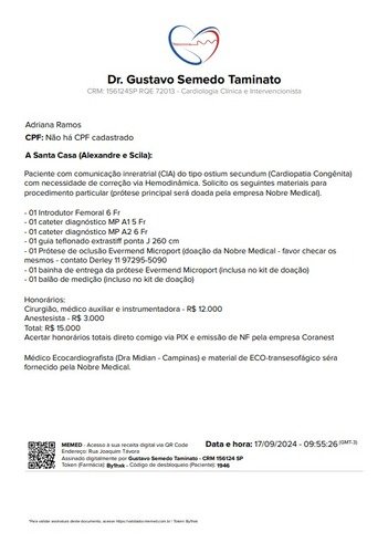 Me chamo Adrielly, criei essa vaquinha pois preciso arrecadar um valor de 20.000 no total para o tratamento de Cardiopatia Congênita da minha mãe, dona Adriana. Recentemente, recebemos a noticia de um curto prazo para realizar a cirurgia, o mesmo de apenas vinte dias.