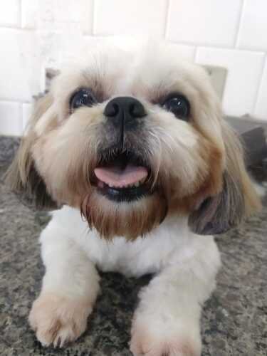 Essa é a Sofia, minha companheirinha de quatro patas e minha primeira filha de coração. Recentemente, ela perdeu dois dentinhos e precisa passar por uma cirurgia de limpeza e tratamento dentário completo com extração de dentes.