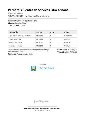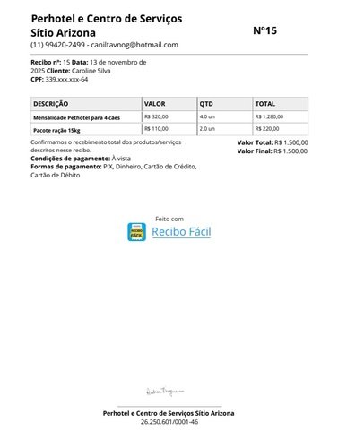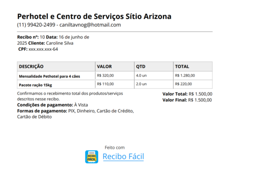 RECIBO AGOSTO / LAR TEMPORÁRIO + RAÇÃO