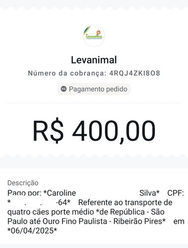 RECIBO ABRIL / LAR TEMPORÁRIO + RAÇÃO + VACINAS E ANTIPULGA